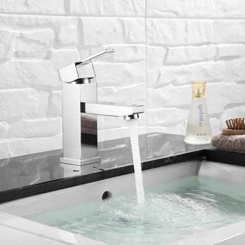 Квадратный смеситель из твердой латуни с хромированной отделкой, коммерческий смеситель для раковины, кухонный кран